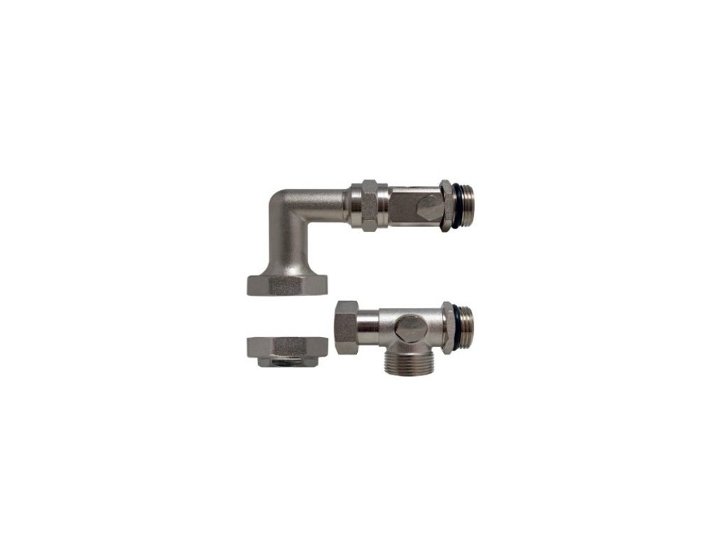 Čerpadlová skupina pro rozvaděče podlahového topení s niklovanou povrchovou úpravou. Oběhové čerpadlo není součástí dodávky.