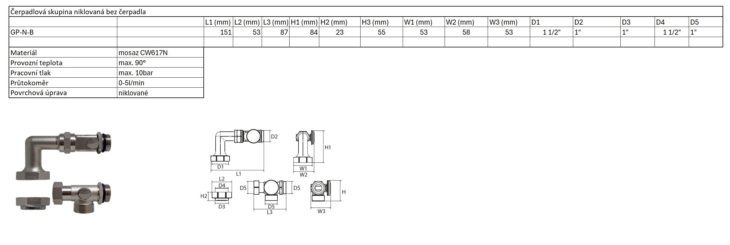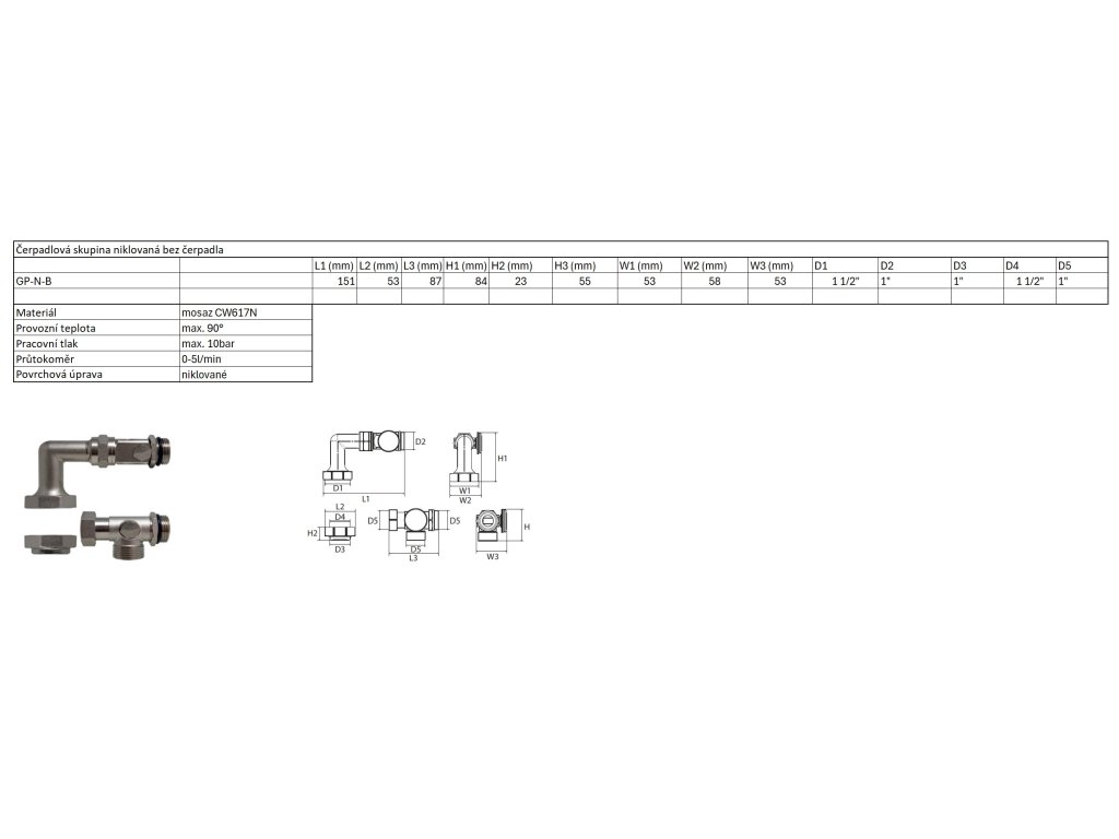 Čerpadlová skupina pro rozvaděče podlahového topení s niklovanou povrchovou úpravou