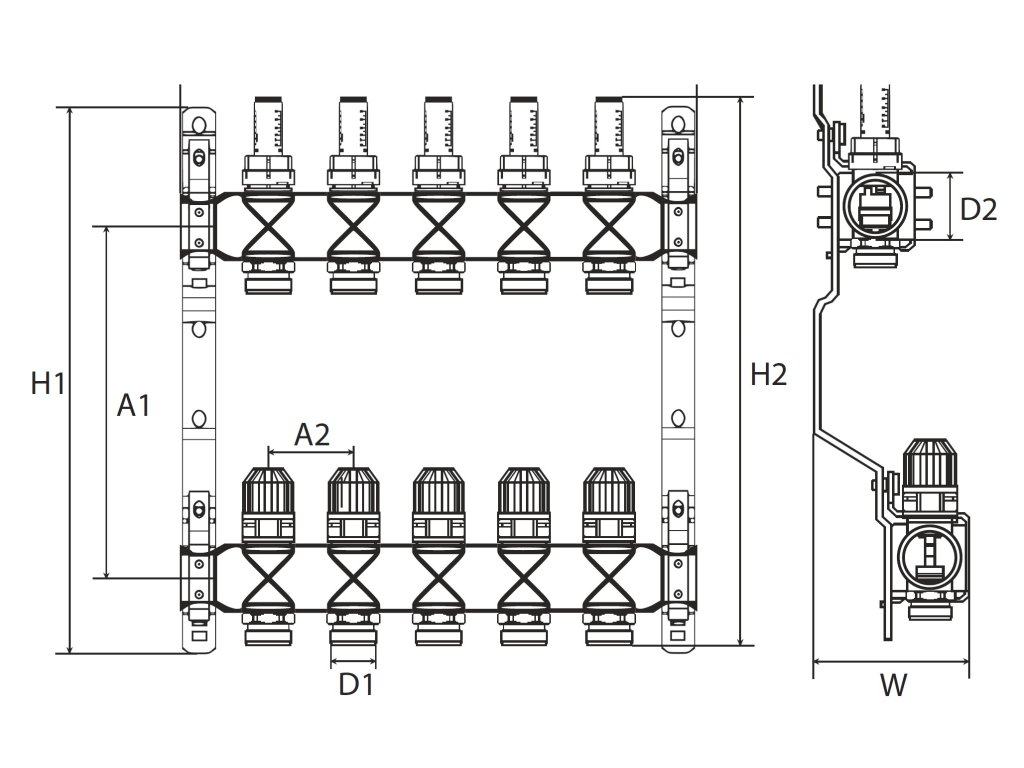 Rozdeľovače sú určené na rozvod teplovodného podlahového vykurovania a na pripojenie ohrievačov (radiátorov). Pozostávajú z dvoch hlavných častí: