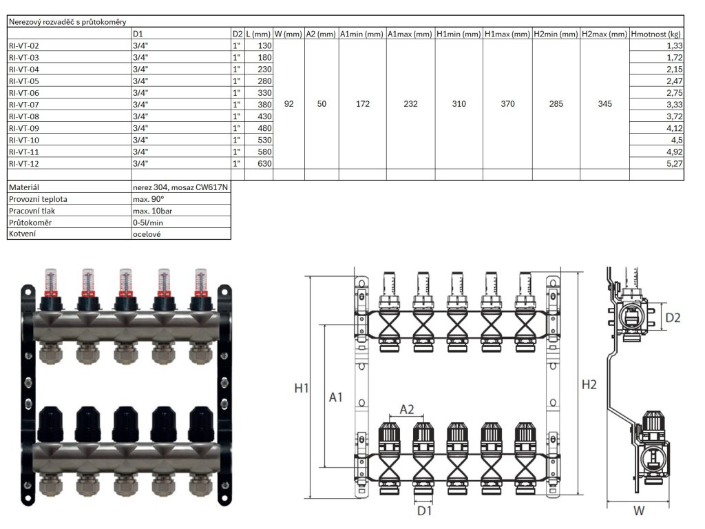 | Nerezový rozdeľovač s prietokomermi | ||||||||||||