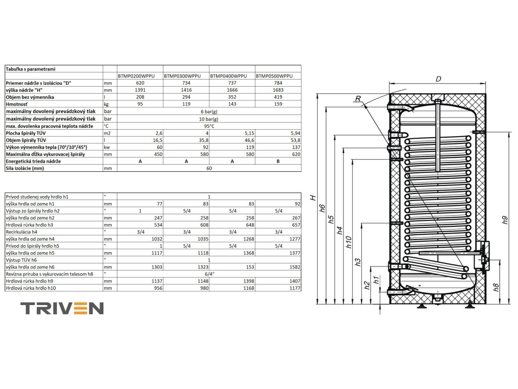 Ohrievače vody dodávame s kvalitnou, neodnímateľnou tvrdou PU izoláciou s hrúbkou 60mm s triedou energetickej účinnosti "A".