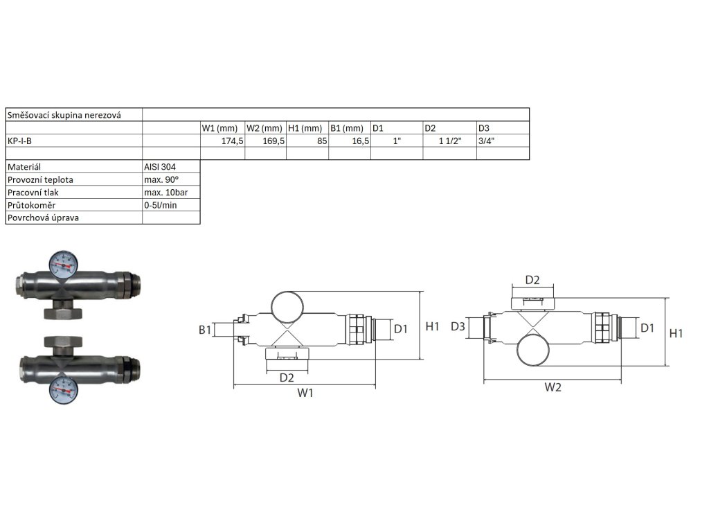 Zmiešavacia skupina nerezová pre rozdeľovače podlahového vykurovania