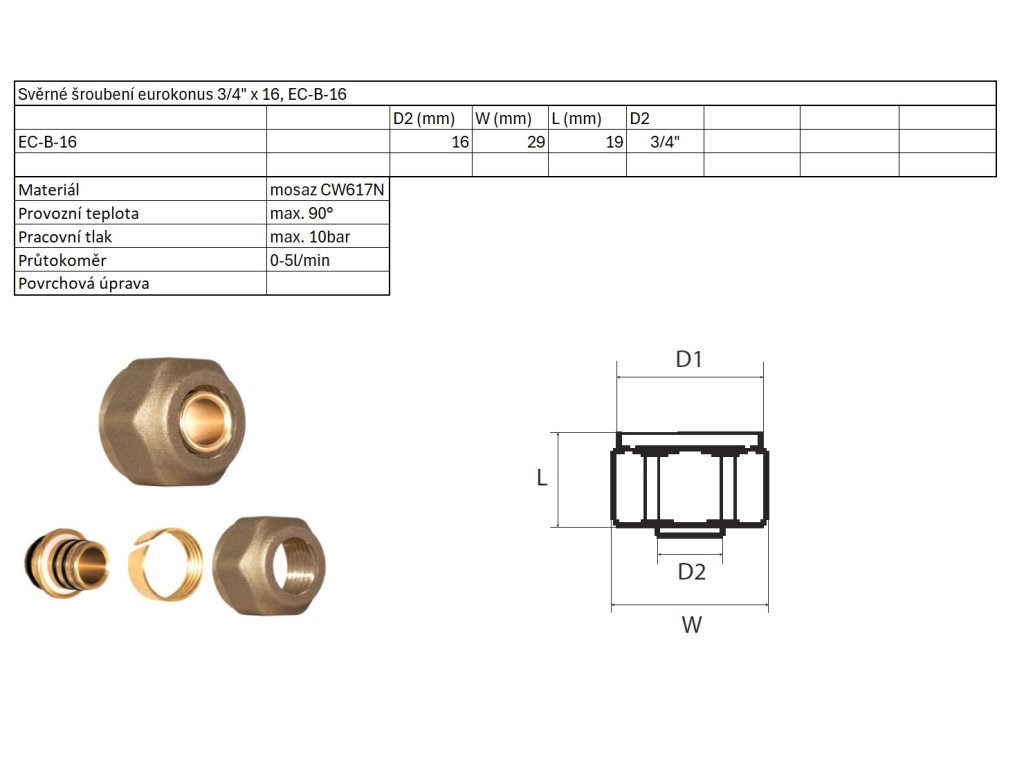 Zverné šróbenie eurokónus mosadzný 3/4" x 16, EC-B-16